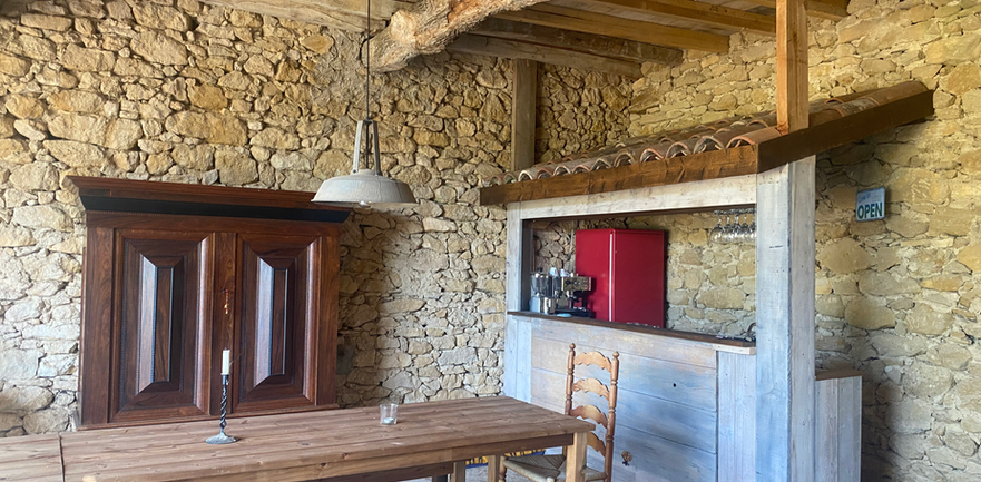 Dans la Grange, vous trouverez un petit bar accueillant, de longues tables robustes et des bancs confortables. L’endroit idéal pour partager un repas, prendre un verre ou jouer à un jeu de société lorsque les soirées sont un peu plus fraîches en début ou fin de saison.